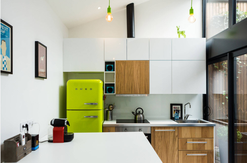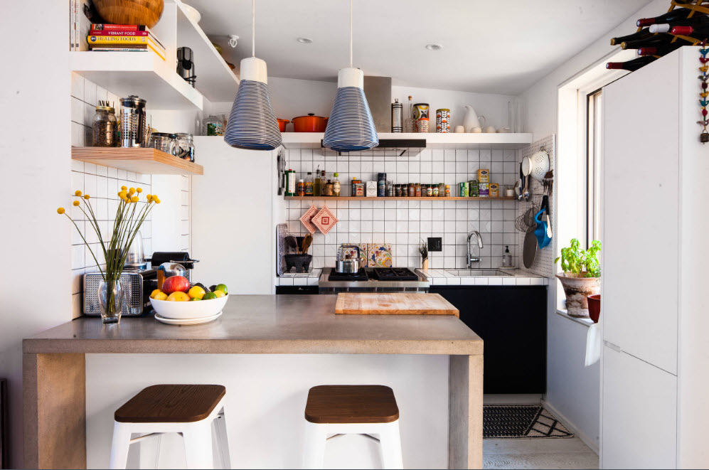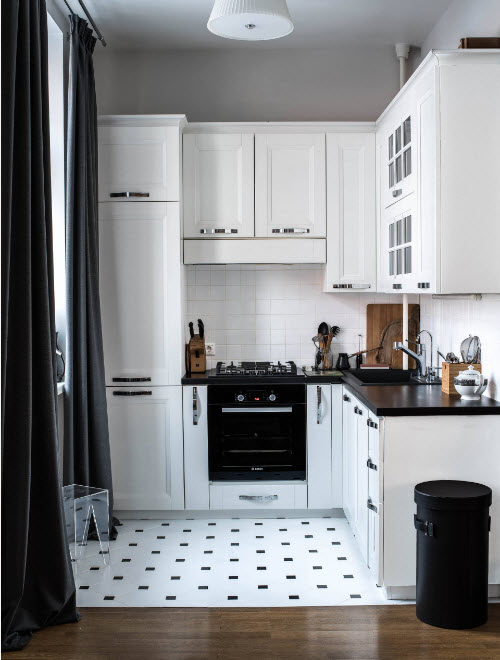 سوف يبدو المطبخ الصغير أكبر بصريًا إذا تم استخدام ألوان فاتحة لتزيين الجدران والسقف