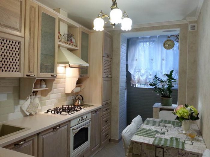 إذا كان المطبخ لديه إمكانية الوصول إلى الشرفة - هذه بلا شك ميزة كبيرة لترتيب المطبخ. على الشرفة ، يمكنك تخزين الأشياء واستخدامها بثلاجة ، ويمكنك تجهيزها واستخدامها كغرفة إضافية.