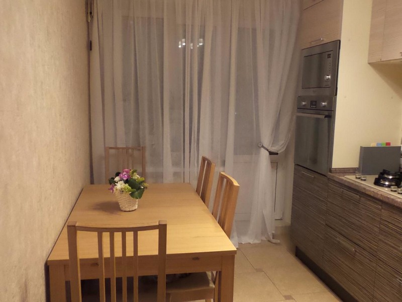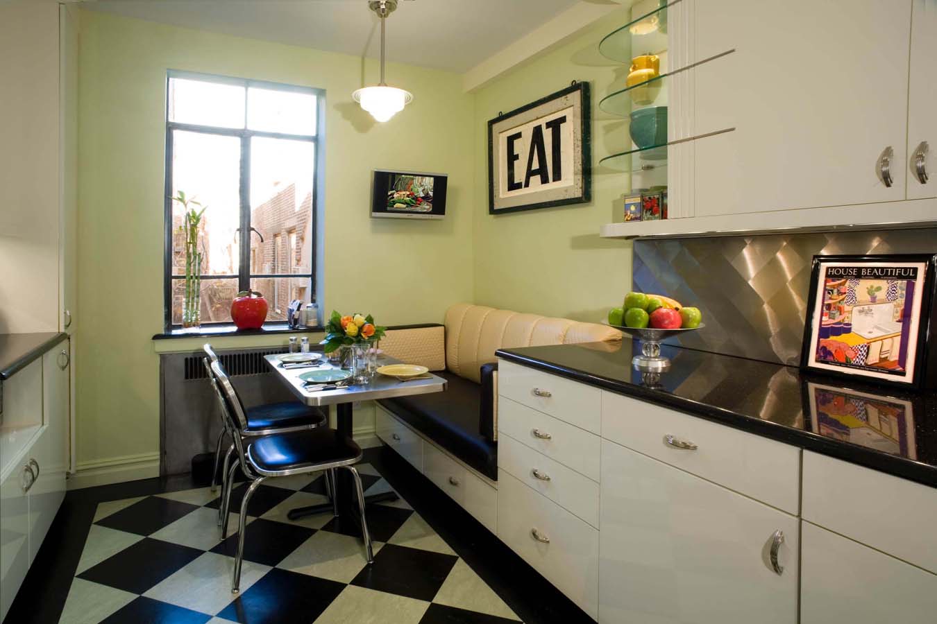 في المطبخ المطول ، يمكن تخصيص مكان للأثاث المنجد بالقرب من النافذة