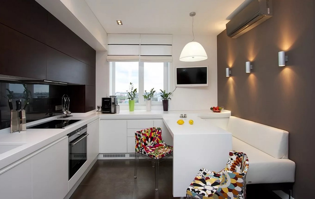 إذا كنت تستخدم هذه الأسرار البسيطة ، فيمكنك تنفيذ تصميم لا تبدو فيه الغرفة صغيرة الحجم. يمكنك التحقق من ذلك من خلال النظر إلى صورة لتصميم المطبخ 10 متر مربع مع أريكة.