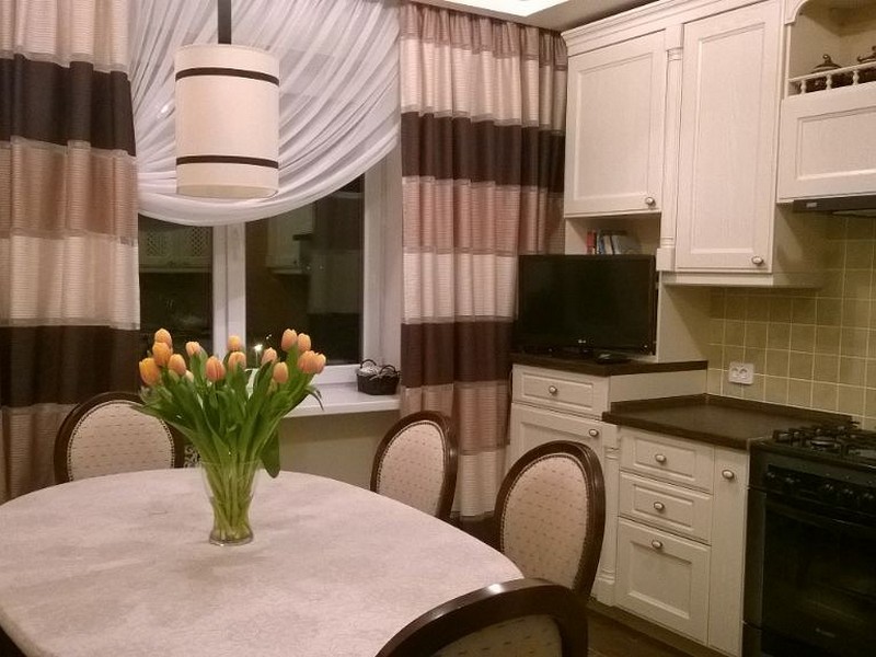 يتم خلق جو مريح في مثل هذا المطبخ بسبب كمية صغيرة من الديكور واللهجات