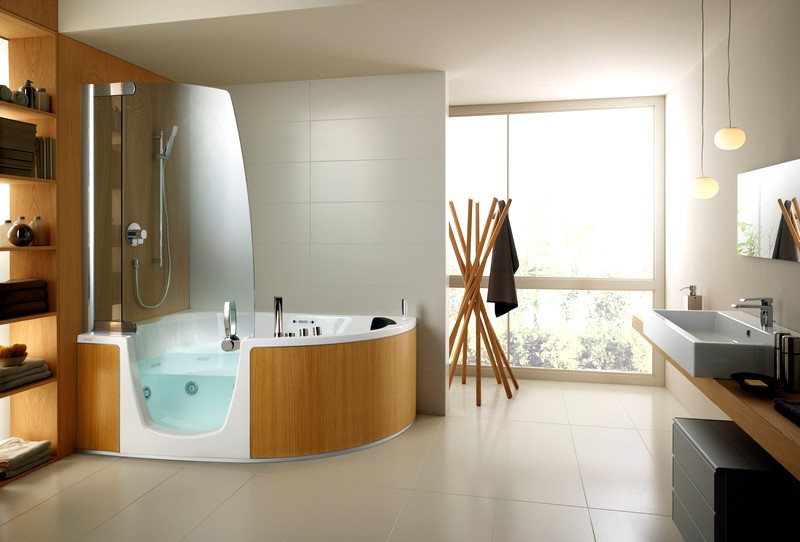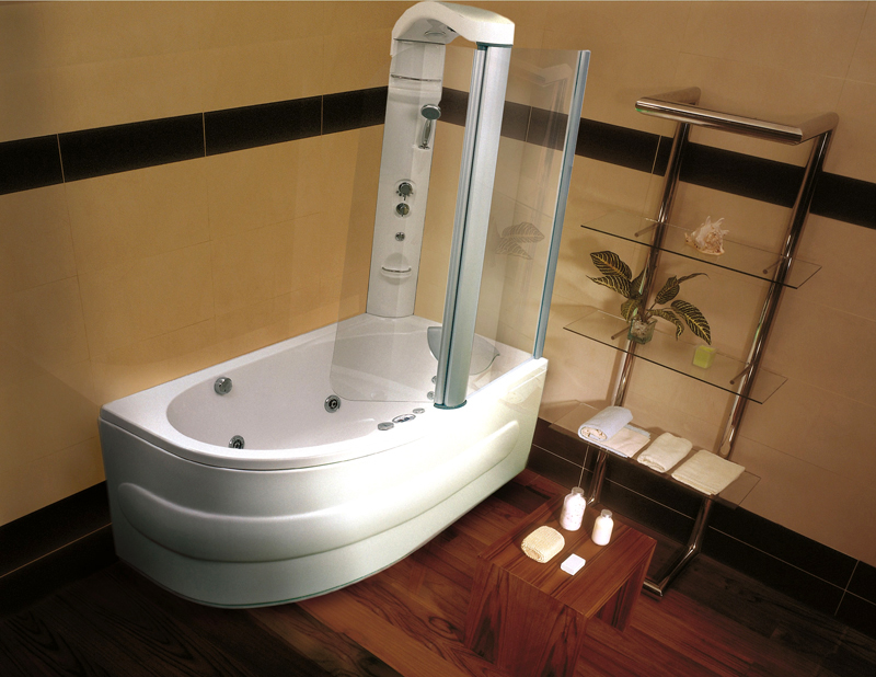 أيضًا ، يتم تقسيم أحواض الاستحمام جنبًا إلى جنب مع مقصورة الدش على شكل:
