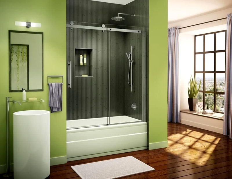 - أبعاد. يمكن وضع حوض استحمام مع دش في غرف ذات تربيع صغير ، وهو أمر مهم لمعظم الشقق الحديثة.