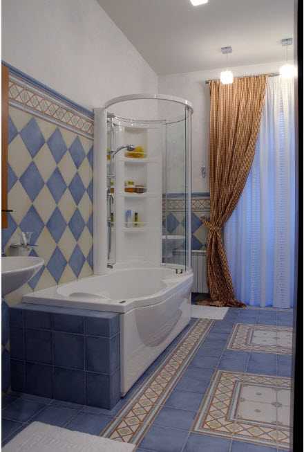 عنصر الديكور يلعب دورا هاما. الحمام والاستحمام اثنين في صورة واحدة لها مظهر جميل. ومع ذلك ، يجب الانتباه إلى الحيل الصغيرة التي يمكن أن تحسن جودة التصميم.