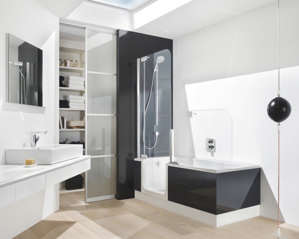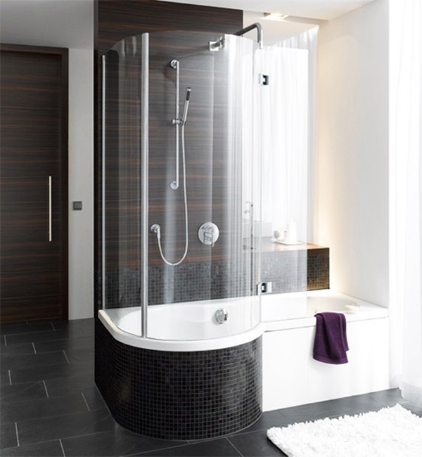 يعتبر حوض الاستحمام مع كابينة الاستحمام هو الحل الأمثل لشقة صغيرة