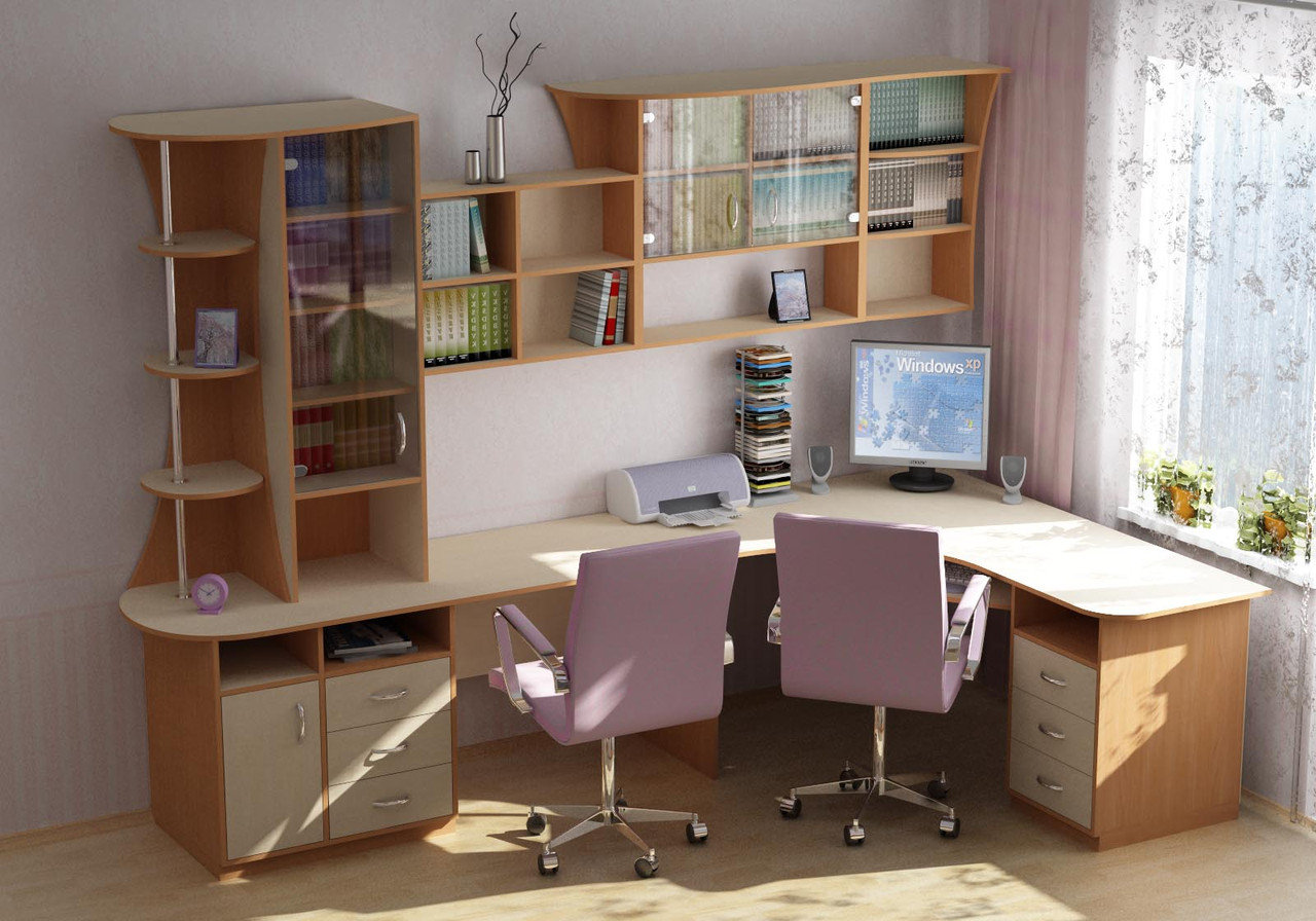 - Модулна. Използвайки модулите, можете да създадете необходимия дизайн на работната зона за класове. Тя може да бъде модерно компютърно бюро в стаята, снимка на структурни модификации може да се гледа в Интернет. Модулните дизайни ви позволяват да организирате голям плот за двама ученици с необходимия набор от чекмеджета, рафтове и шкафове.