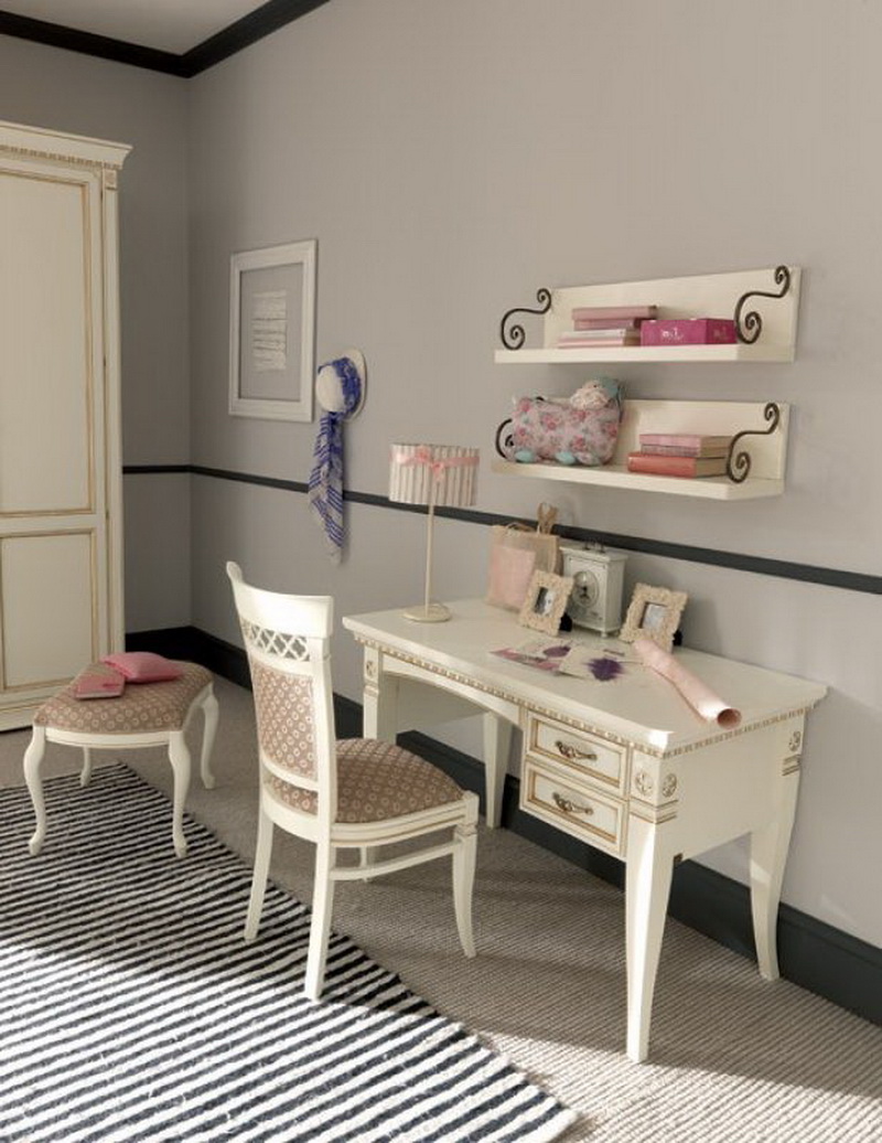 Елегантна маса с къдрави крака в стаята на момиче, декорирано в стила на френския Прованс