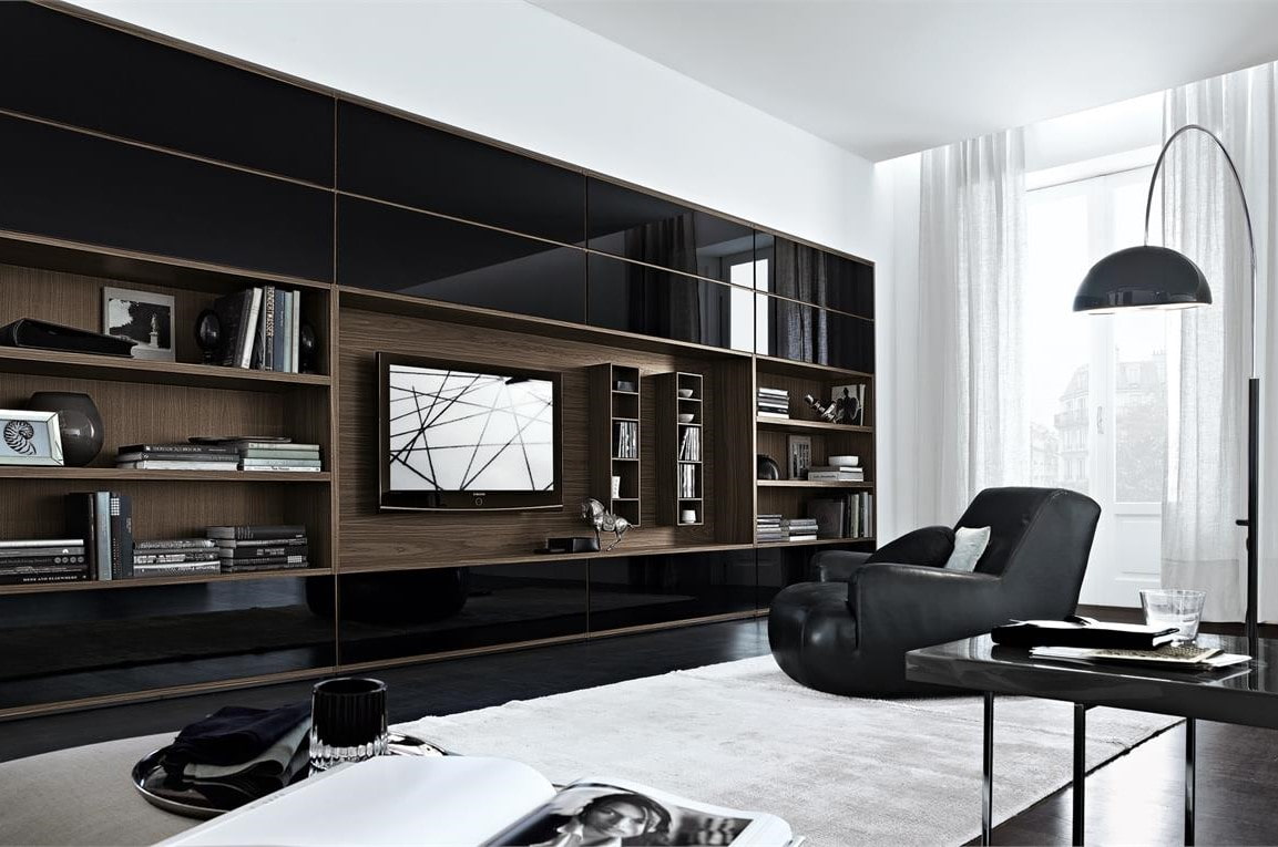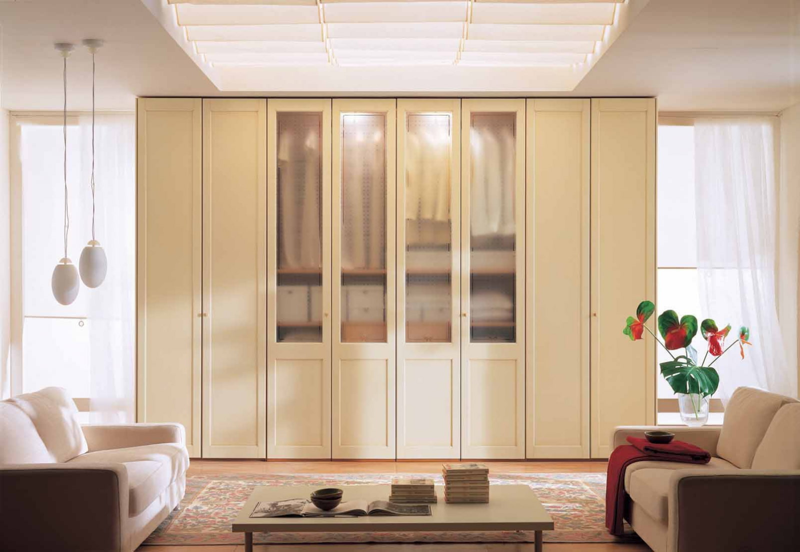 Вграден гардероб е монтиран на цялата стена. Той има много предимства като: заема малко място, просторен.Често използвана версия на вградената стена. Той има място за телевизор, достатъчно просторен е за неща от всякакъв вид.