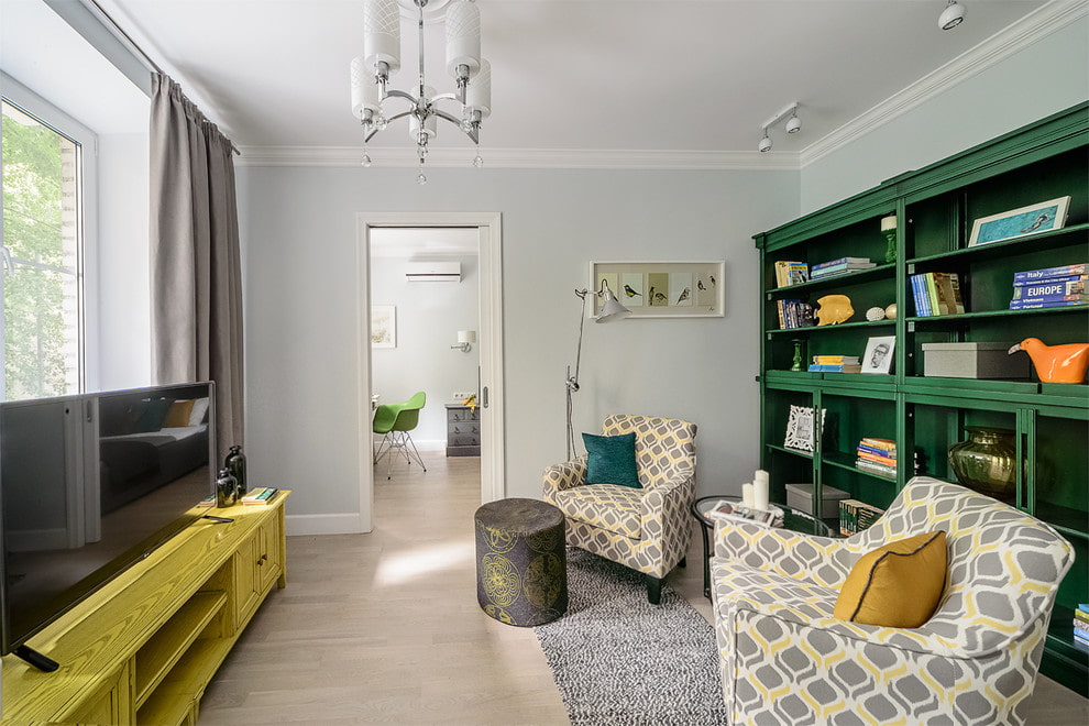 В малка всекидневна не трябва да се използват извънгабаритни модели, които прикриват пространството.