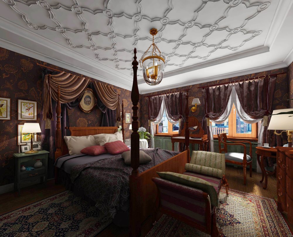 Също толкова важна характеристика е използването на голямо количество текстил, дори при декориране на стените.