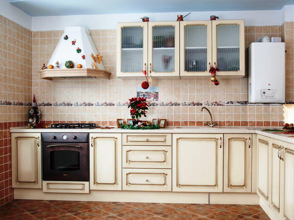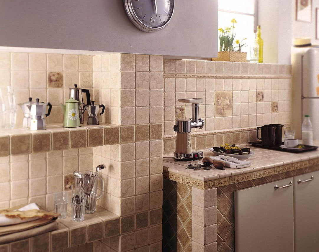 Когато декорирате кухня с плочки, не можете да се ограничавате само до работните зони, защото керамиката е чудесна и за облицовка на стени и тавани