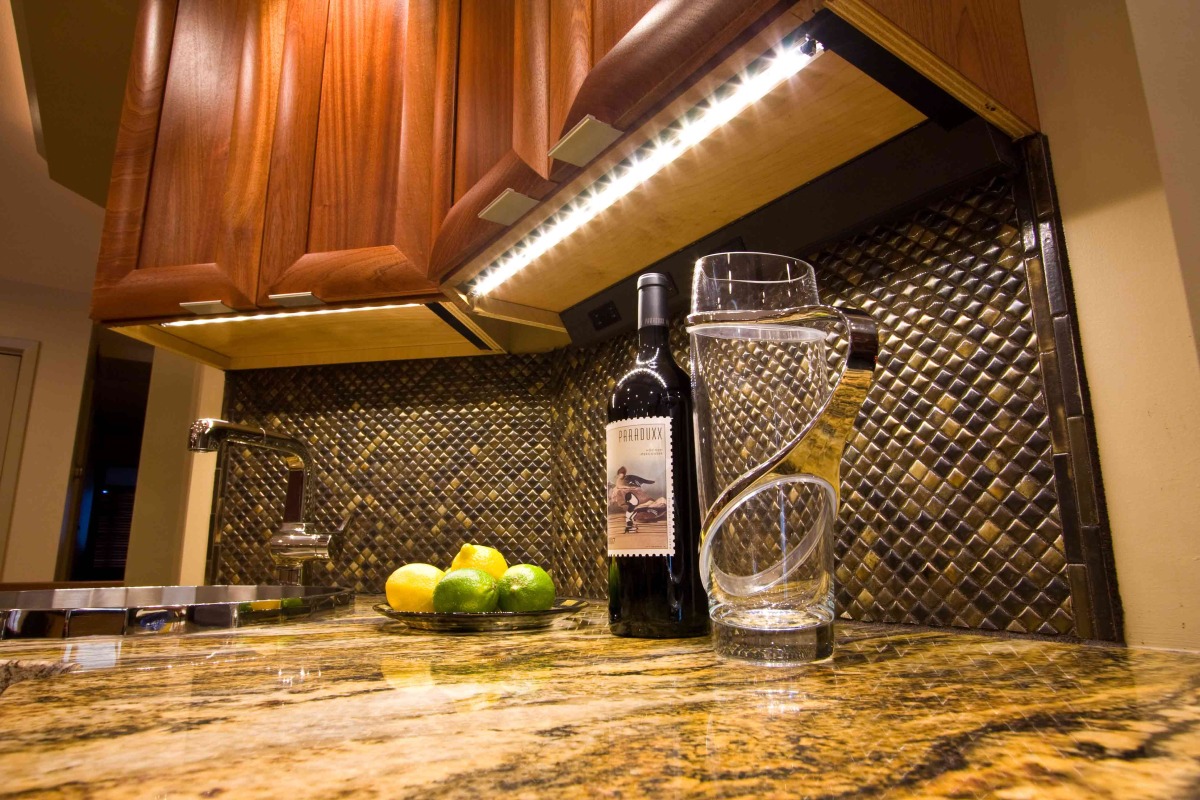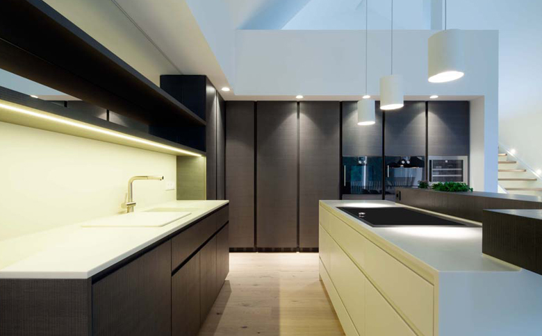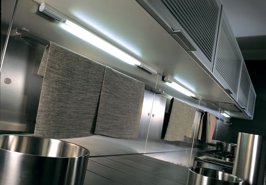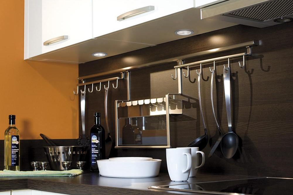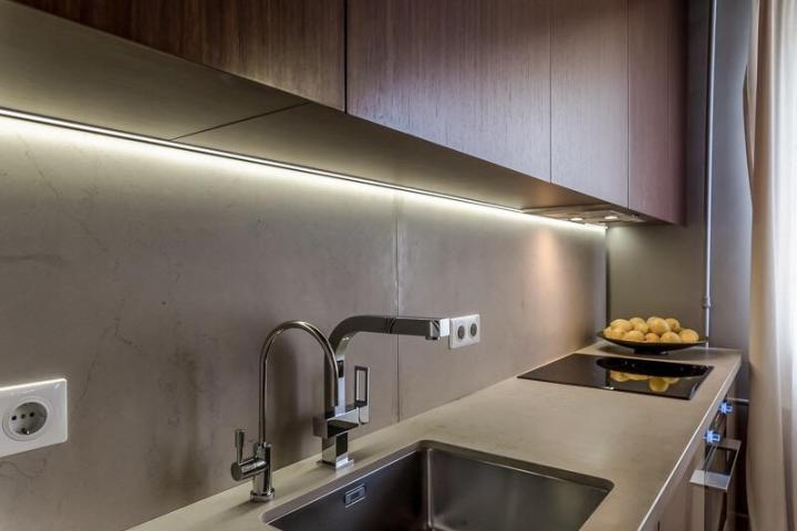 Прожекторите, вградени в мебелните шкафове, заемат част от вътрешното пространство на шкафовете