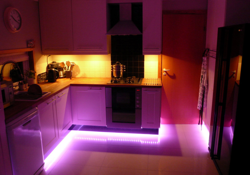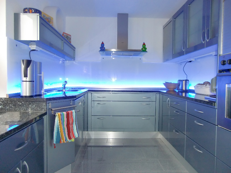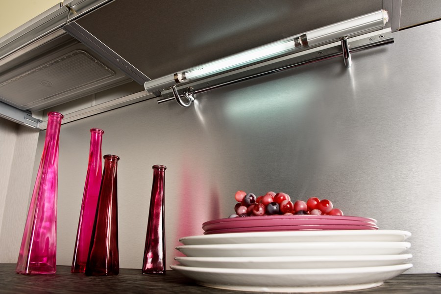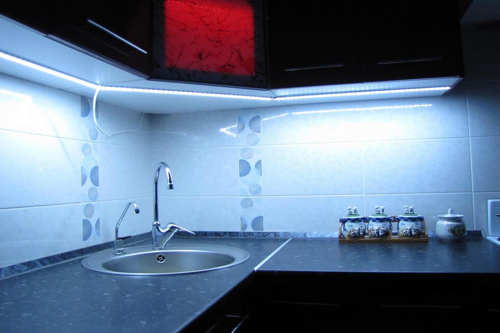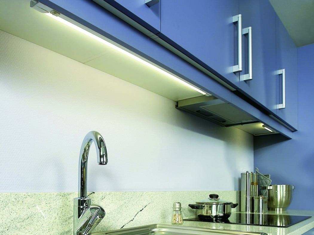 В кухнята е препоръчително да използвате вътрешни тела, в които светодиодите са скрити зад стъклото. Продуктите са по-скъпи, но издържат по-дълго