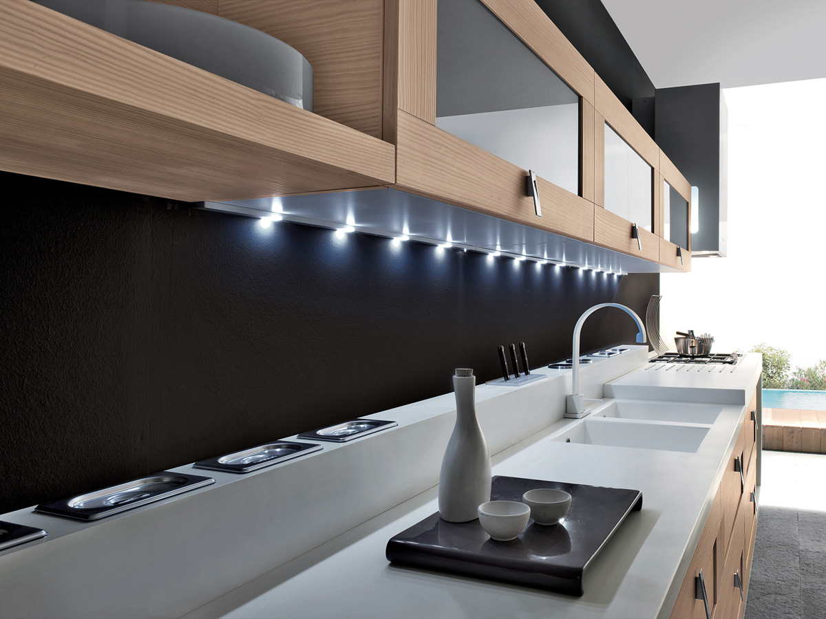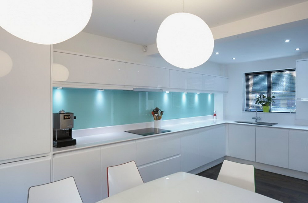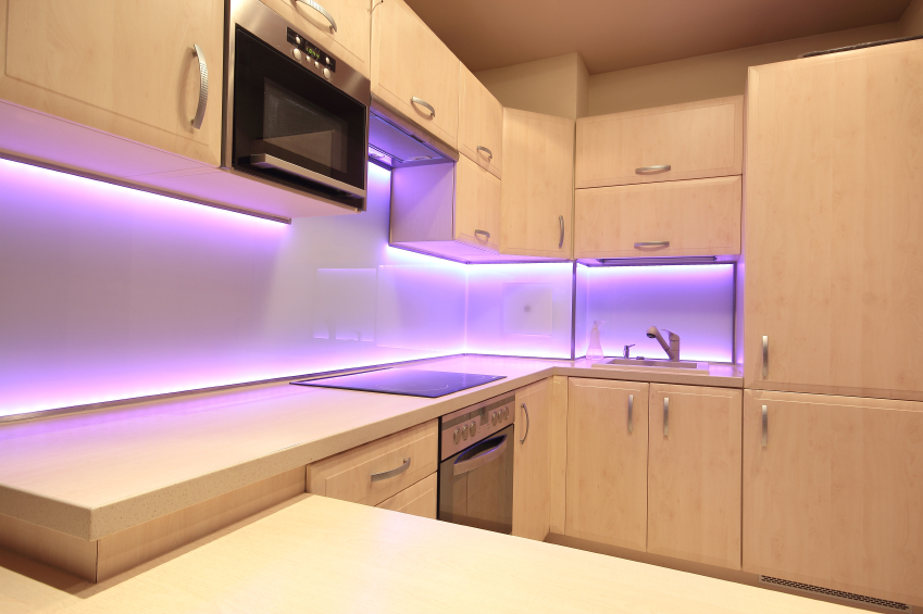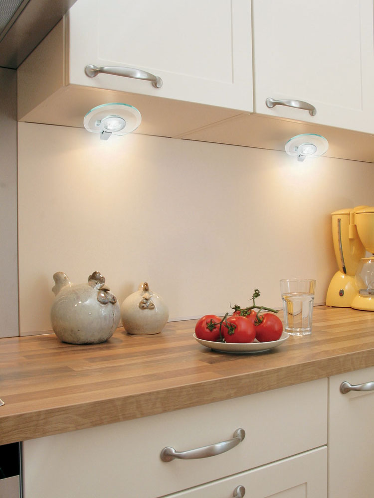 В кухнята е препоръчително да използвате вътрешни тела, в които светодиодите са скрити зад стъклото. Продуктите са по-скъпи, но издържат по-дълго