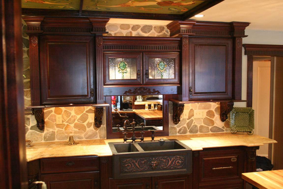 Възможността да се организира осветяването на работната зона с помощта на стенни светлини в кухнята без висящи шкафове