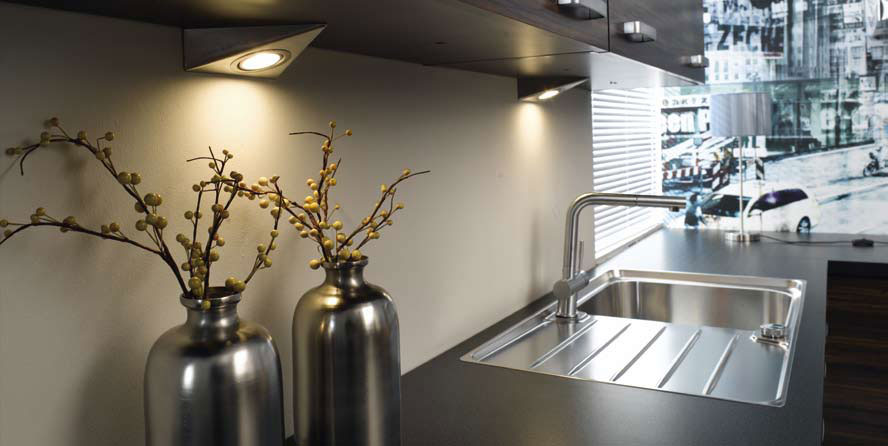 Струва си да се подчертаят няколко области, в които осветлението е особено необходимо - това е място за рязане, мивка и печка