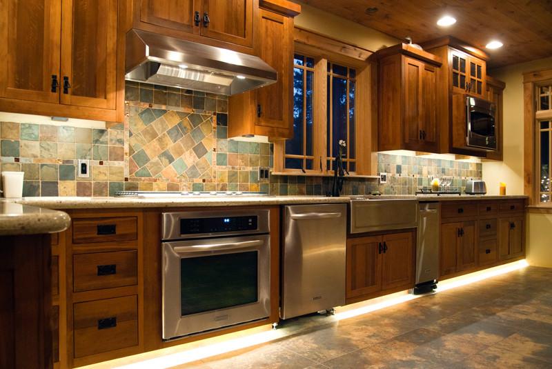 Опции за осветление на кухнята в работната зона (избор на снимки)