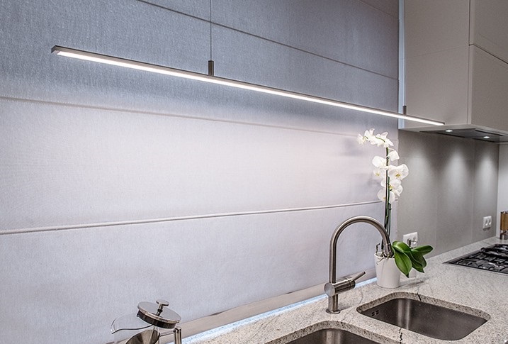 Тоест осветлението може едновременно да добави удобство при готвене, да приложи функцията за зониране, както и да добави комфорт и настроение на пространството.