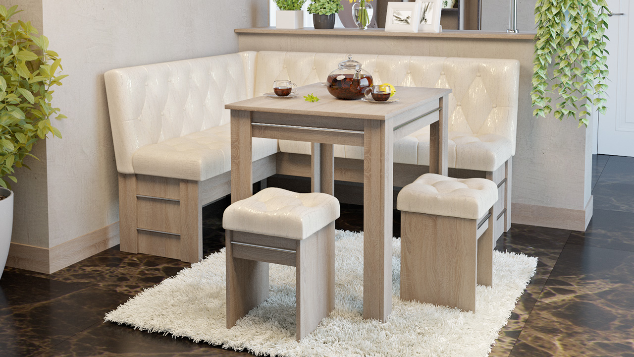 За разлика от таблиците, кухненски ъгъл може да бъде оборудван с: