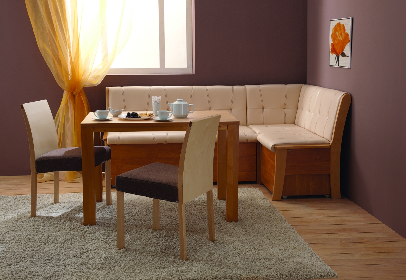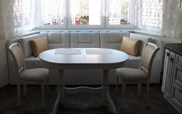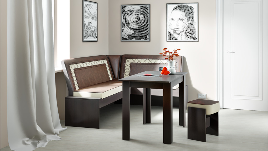 - ъглов кухненски диван е трудно да се побере в тесни пространства (повече за това по-късно).