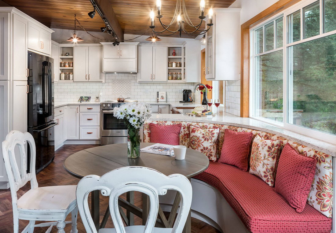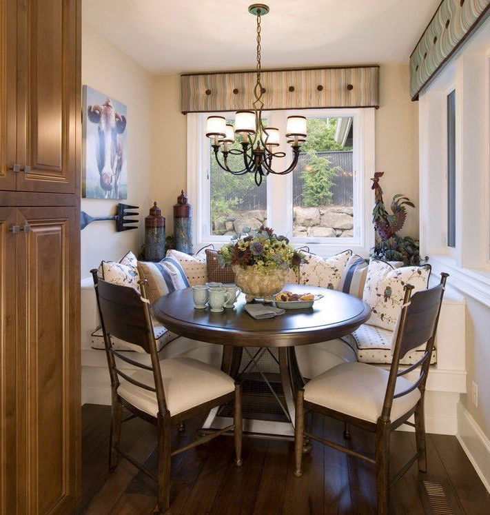 Няма специална нужда да украсявате допълнителен кухненски ъгъл, но можете да добавите няколко елемента, благодарение на които той ще се впише в общия ансамбъл на кухнята и ще добави комфорт. Например, разперете възглавниците или хвърлете одеяло отгоре.