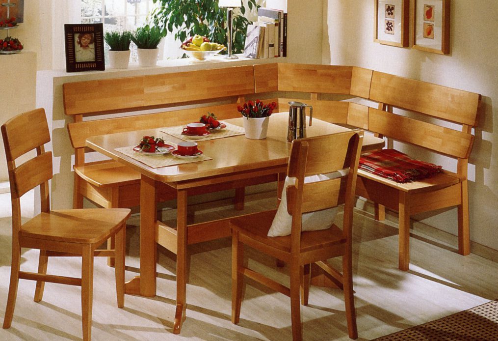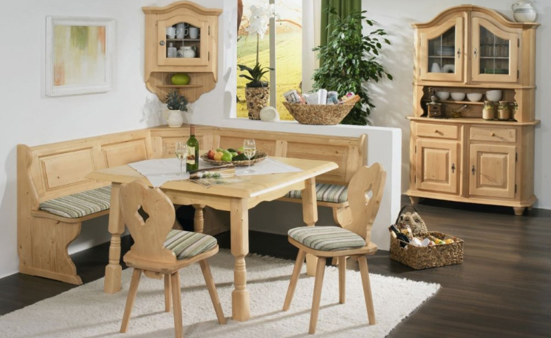 Твърдите ъгли често са изработени от естествено дърво, такива мебели са идеални за кухня в класически или селски стил