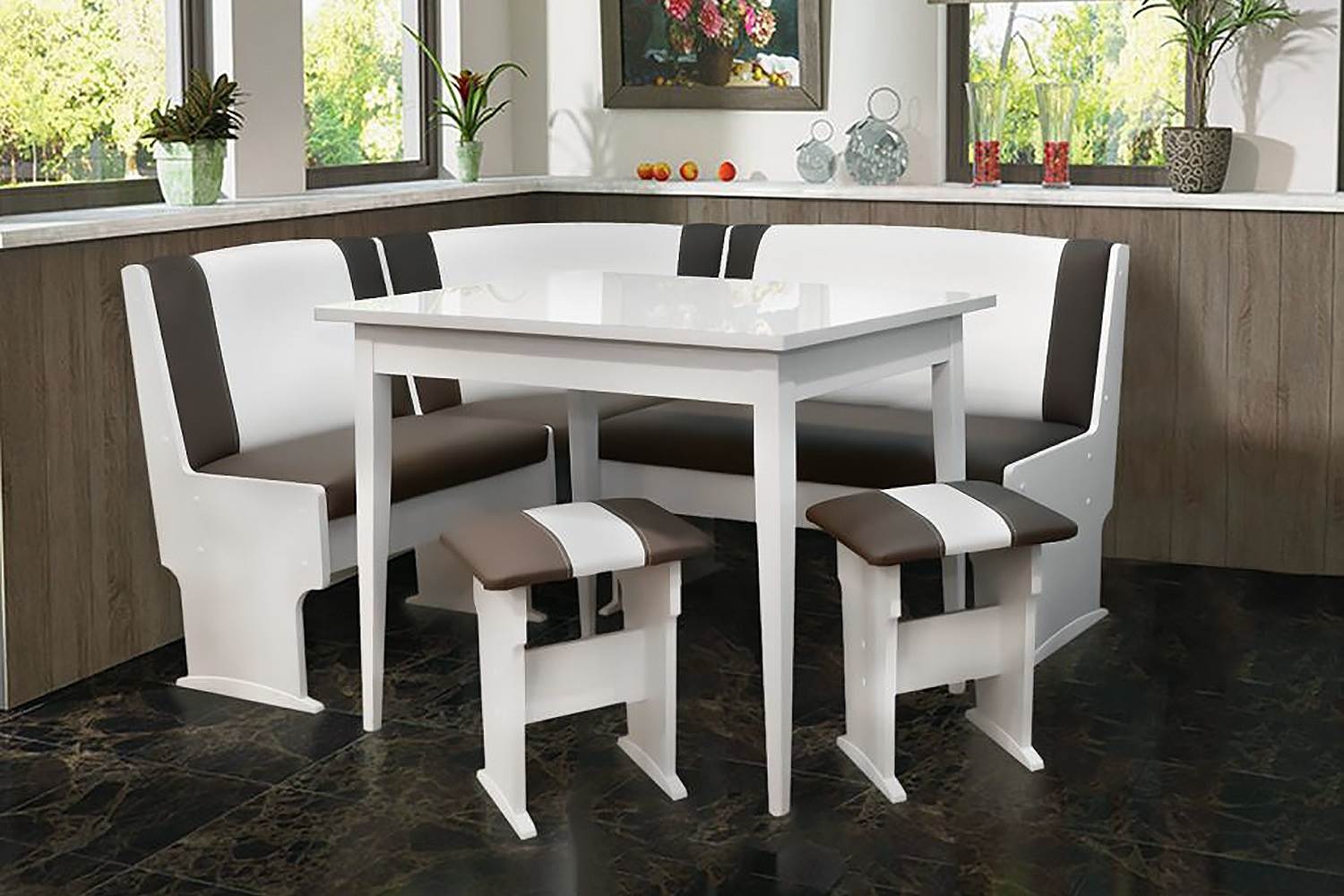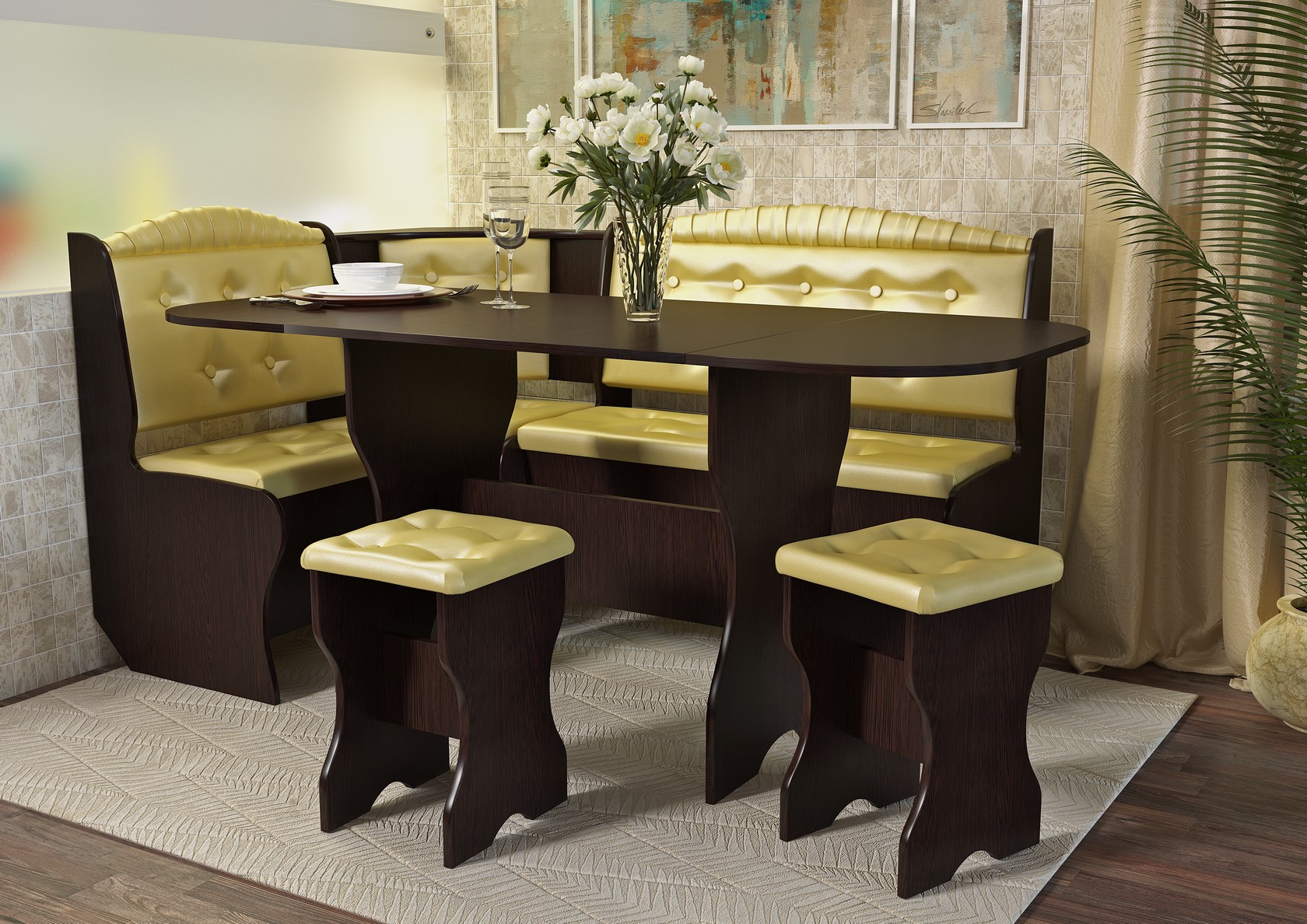 Опции за кухненски ъглови материали със маса и столове