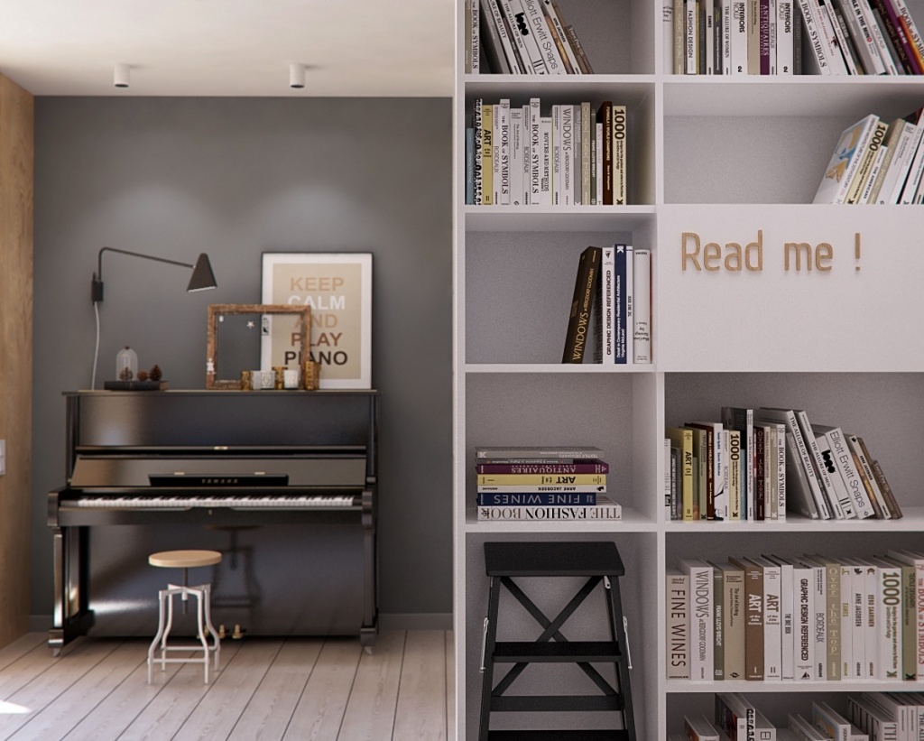 Concevoir une salle de classe avec ce style est son avantage. Les surfaces brillantes, les façades polies des armoires, les comptoirs noirs d'un bureau trouveront une application répandue dans le constructivisme. L'abondance de livres placés sur des étagères ouvertes donnera la sévérité requise, le sérieux du style.