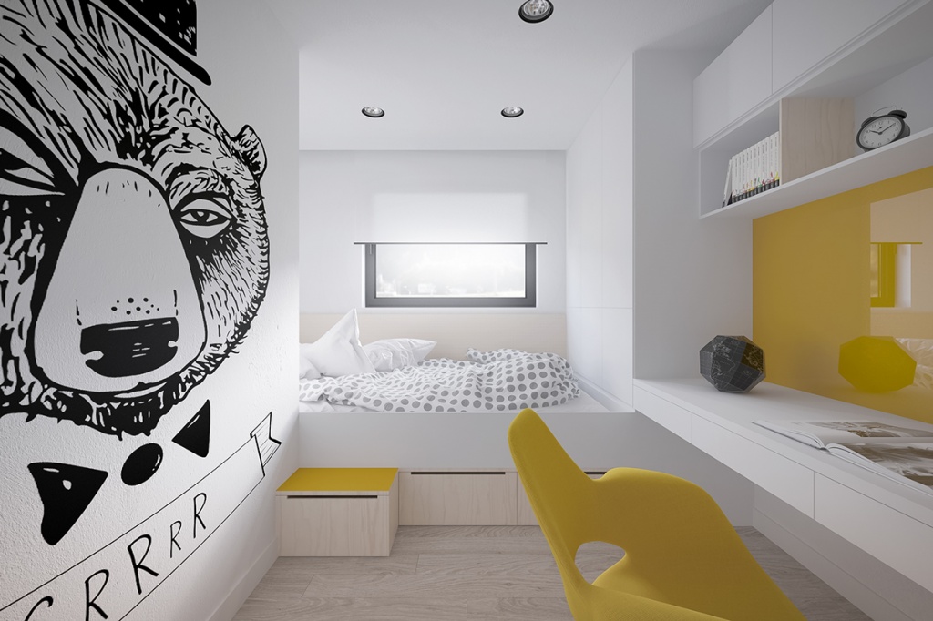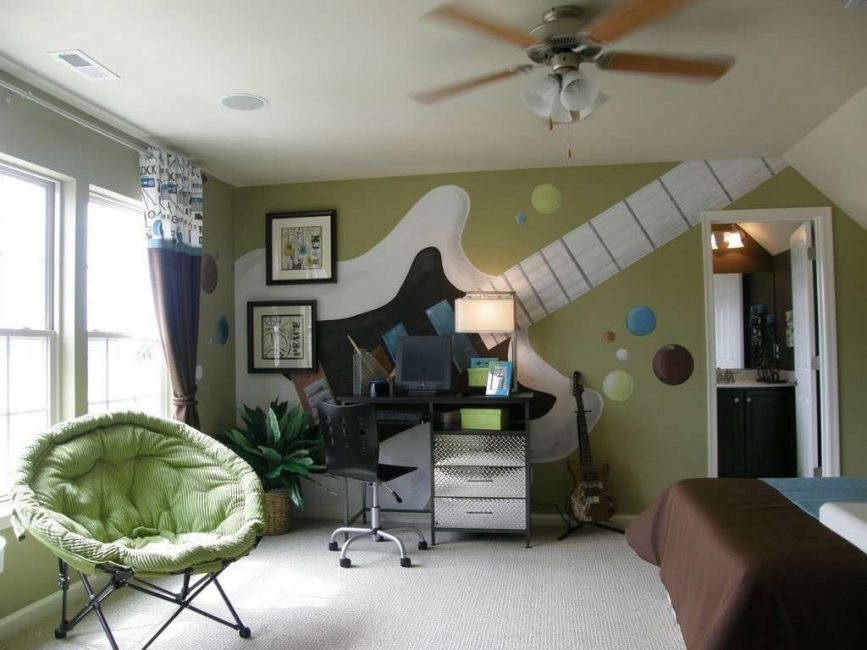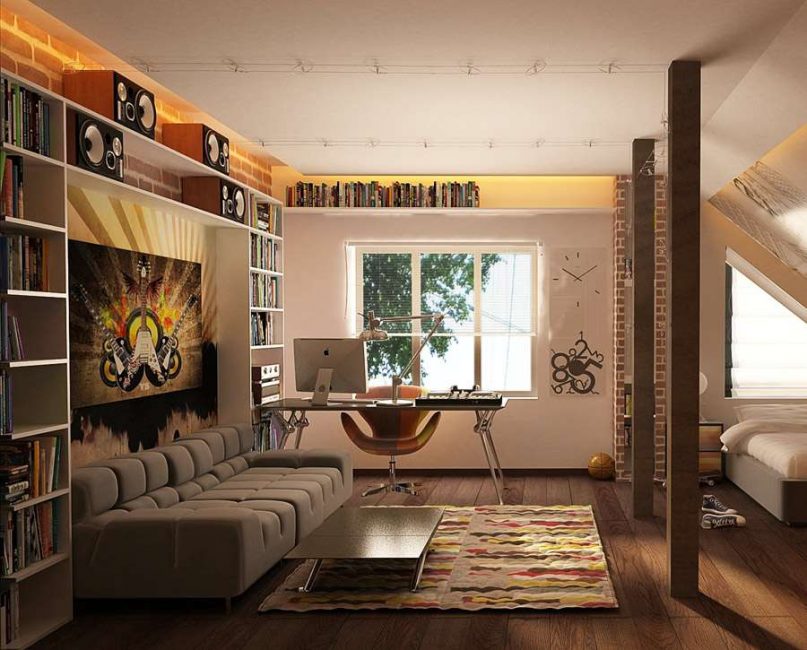 Cette conception de chambre convient à un adolescent qui apprécie tout ce qui est original et inhabituel.