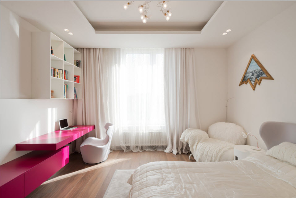 Astuce. Lors de l'aménagement d'une chambre pour une adolescente, il est préférable d'utiliser des tons blancs clairs. Si vous devez réorganiser l'espace, des nuances claires aideront à rendre ce processus facile et rapide.