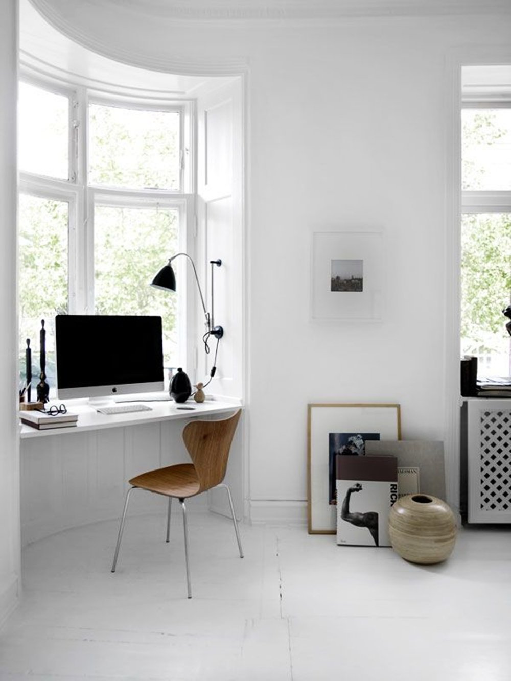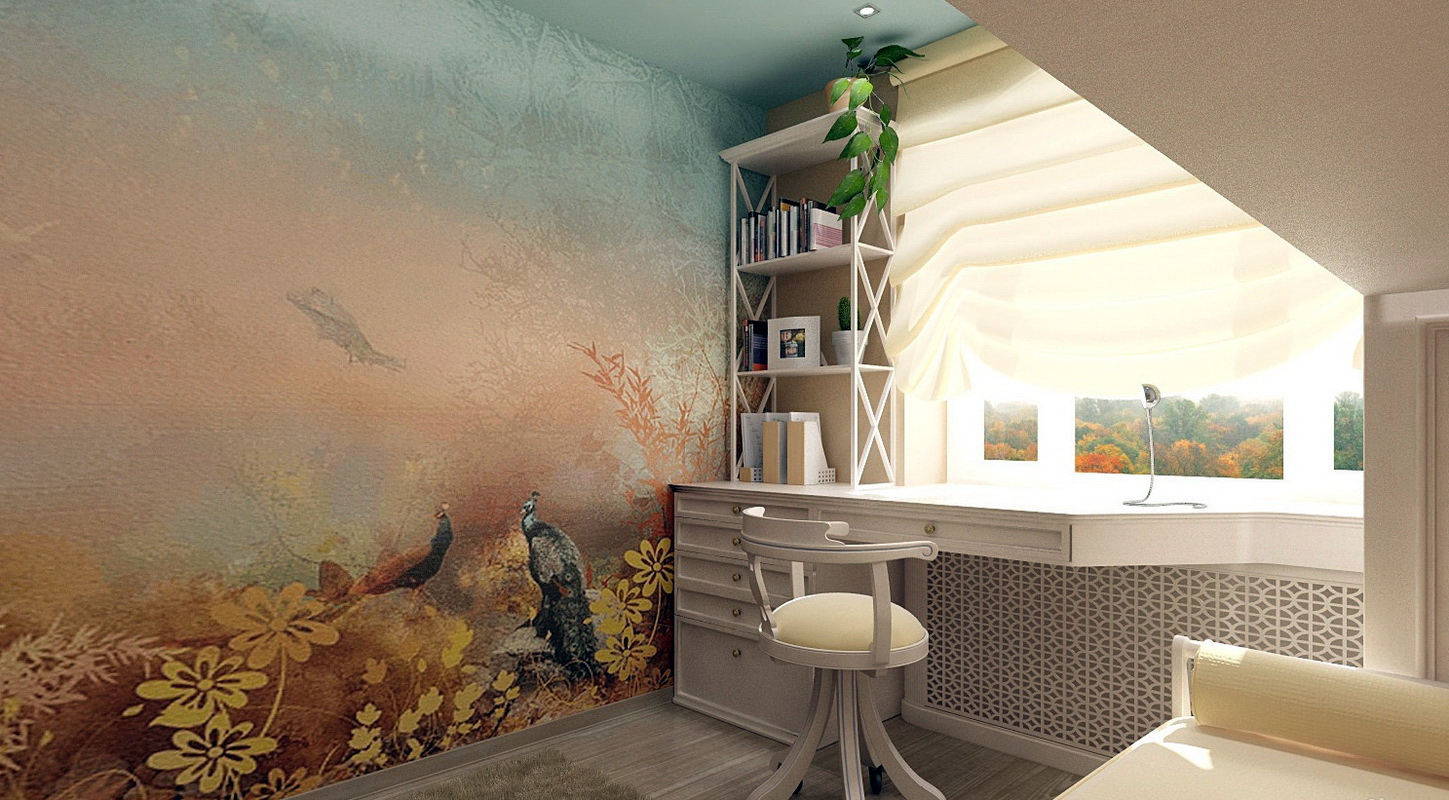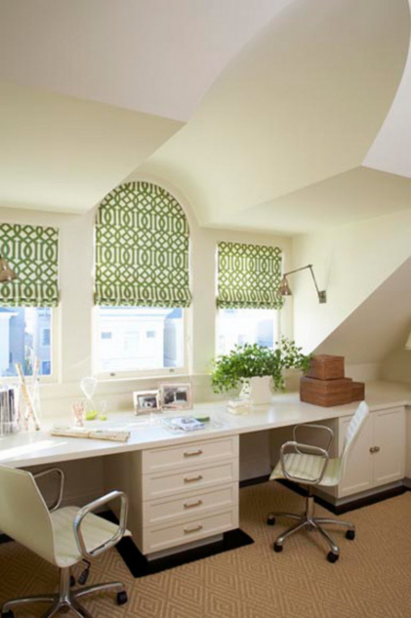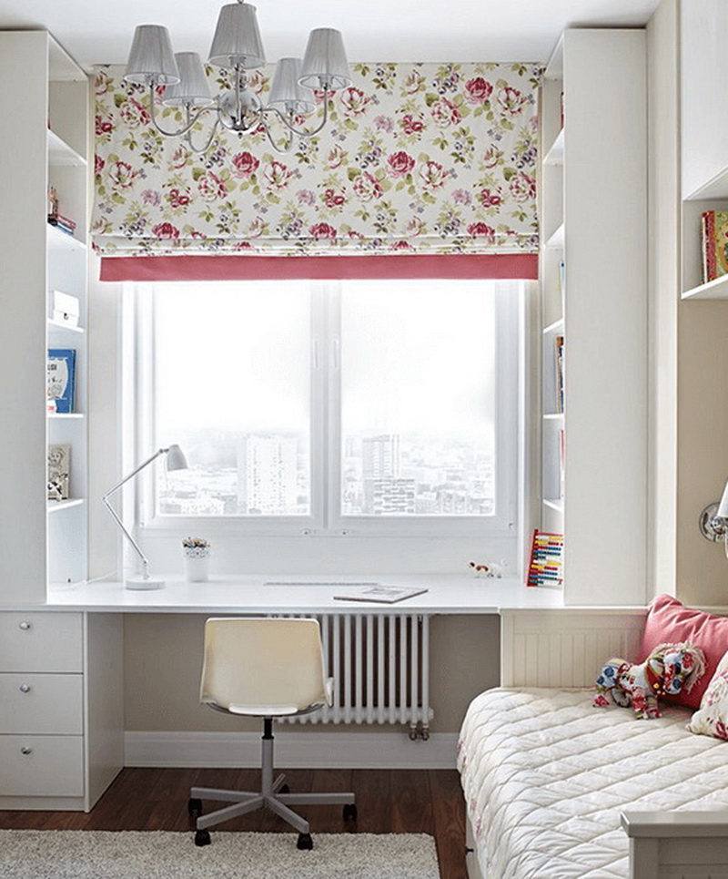 Il est préférable de suspendre des rideaux courts sur la fenêtre, par exemple des rideaux roulés jour-nuit, à l'aide desquels il est très pratique d'ajuster le degré d'éclairage du lieu de travail