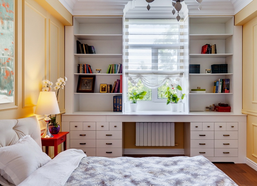 L'utilisation rationnelle de l'espace permettra la table intégrée en MDF, placée entre deux armoires dans les coins de la pièce
