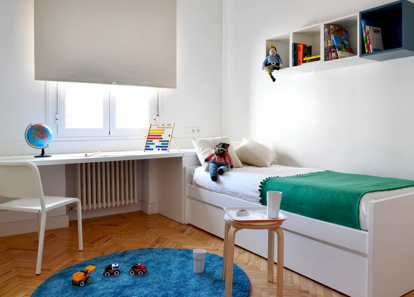 Dans la chambre des enfants, vous pouvez simplement placer une table près de la fenêtre, mais la solution semble plus élégante lorsque la surface de travail est intégrée au rebord de la fenêtre.
