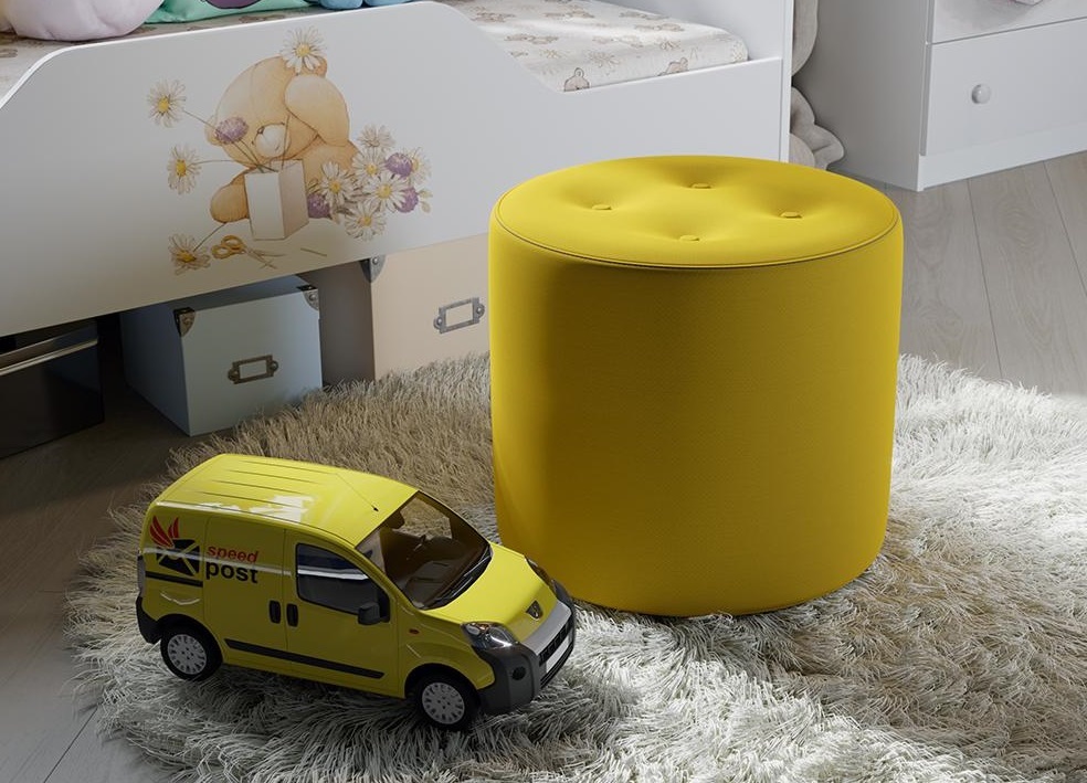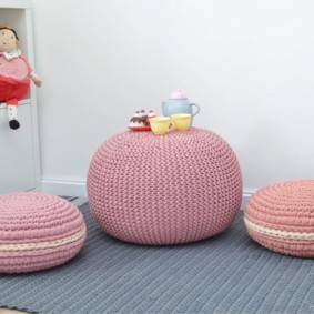 - La sécurité Les enfants ne pensent pas particulièrement à la prudence et peuvent frapper pendant le match. Par conséquent, les meubles pour enfants ne doivent en aucun cas avoir des angles vifs. Cette règle s'applique également aux poufs: il est préférable de choisir des modèles souples pour minimiser les risques de blessures.