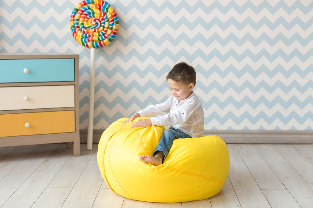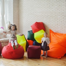 Lors du choix d'un pouf à l'intérieur d'une pièce pour enfants, vous devez faire attention à sa combinaison avec l'intérieur.