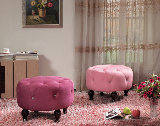 - Matériau de rembourrage. Les modèles de châssis sont généralement doublés de polyester ou de cuir. Un pouf doux, des tissus comme le velours, la microfibre, le flocage. Ne vous laissez pas berner par l'apparence, le même velours à la mode est difficile à nettoyer et nécessite des soins réguliers.