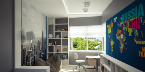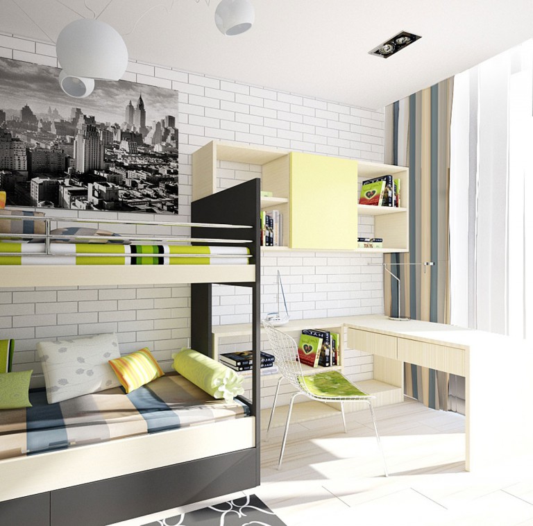 Important! Chaque zone fonctionnelle devrait avoir un bon éclairage local, en particulier là où les enfants apprennent et lisent des leçons. Aux lits, il est souhaitable de prévoir des interrupteurs pour l'éclairage général et des appliques de chevet.
