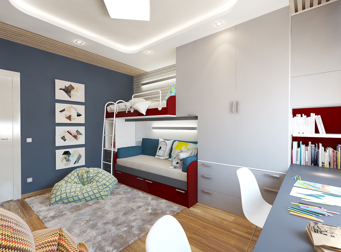 Plus la différence d'âge des fils est grande, plus la division de la pièce en zones devrait être évidente