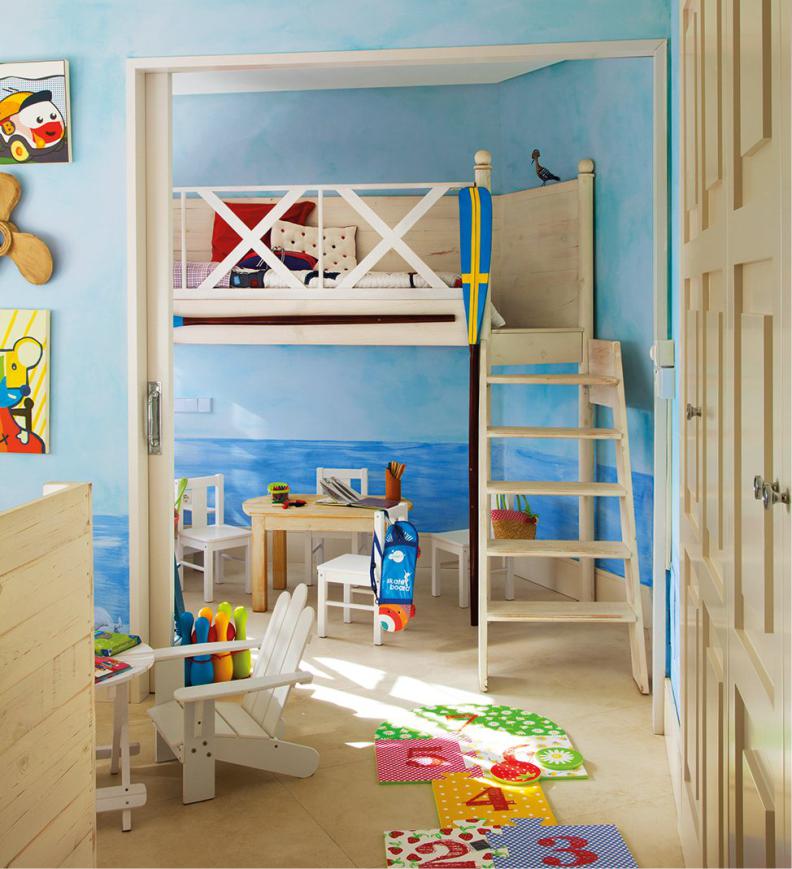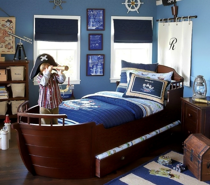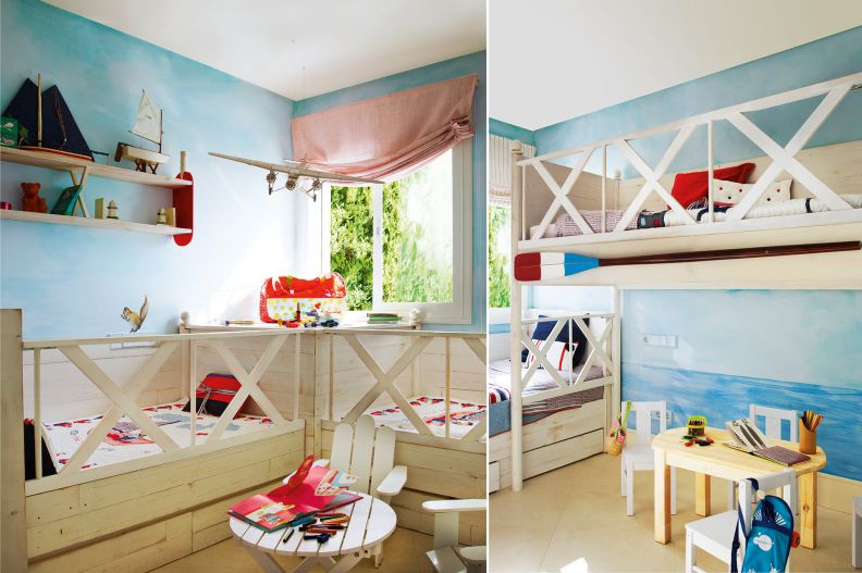 Dans le thème marin de la chambre, un lit superposé en forme de navire aura fière allure