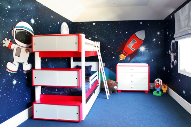 Les lits dans la chambre des enfants peuvent prendre la forme de fusées, de voitures ou de navires