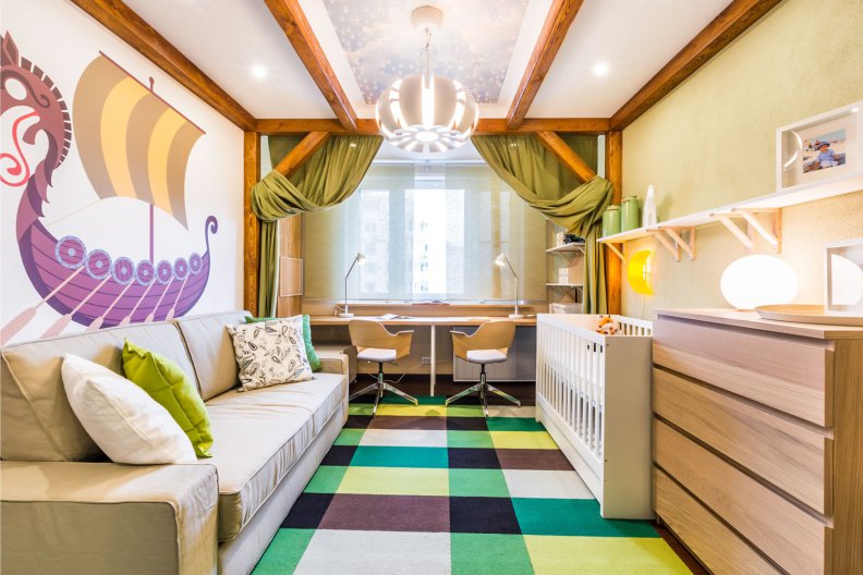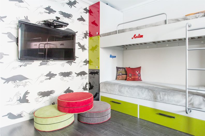 La division en zones est généralement assez arbitraire, mais tout doit être à portée de main pour ne pas passer d'un coin à l'autre. Les couchages peuvent être situés sur des murs opposés si la pièce est divisée en deux moitiés environ. Il est préférable de mettre les lits ou les canapés pour enfants face à face, afin de ne pas s'impliquer dans la communication avant le coucher.