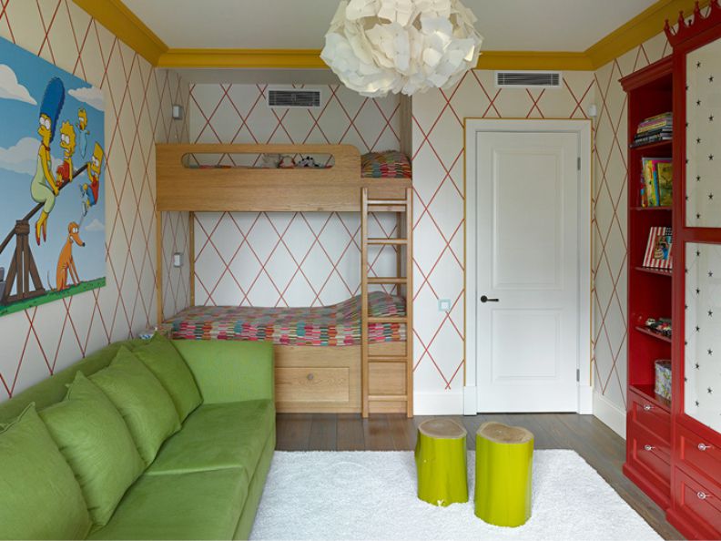 La palette de couleurs des meubles et de toute la chambre des enfants ne doit pas se limiter au fait que le bleu est pour les garçons, le rose pour les filles. Le contexte principal:
