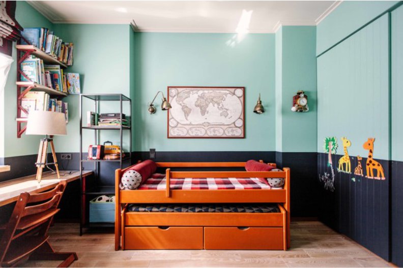 Les enfants grandissent rapidement, mais les parents ne sont pas pressés de changer la conception de la crèche pour deux garçons d'âges différents. Habituellement, les objets survivants du frère aîné sont automatiquement transférés à l'enfant plus petit. Le même sort attend les meubles, qui deviennent courts - les pieds reposent contre les côtés du canapé ou de la tête de lit.