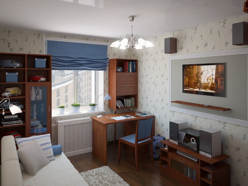 Après 10 ans, l'enfant a déjà besoin d'espace pour l'intimité. La meilleure solution serait d'utiliser un rideau coulissant ou un écran. C'est particulièrement difficile si des enfants hétérogènes vivent dans la pièce. Cela ajoute du travail supplémentaire pour répondre aux besoins de chacun d'eux. Pour les enfants d'âge préscolaire, la salle ne peut pas être divisée, les jeux communs sont bien adaptés au développement. Pour les enfants plus âgés, la pièce doit être divisée en créant un coin pour la fille, où seront ses jouets ou une table cosmétique, pour le garçon, vous pouvez faire un coin sport.