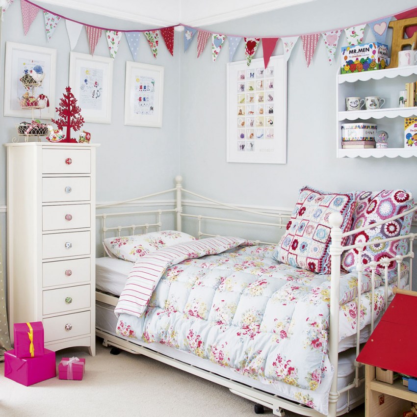 Textiles à fleurs, rideaux délicats, meubles sculptés - la Provence convient mieux aux filles