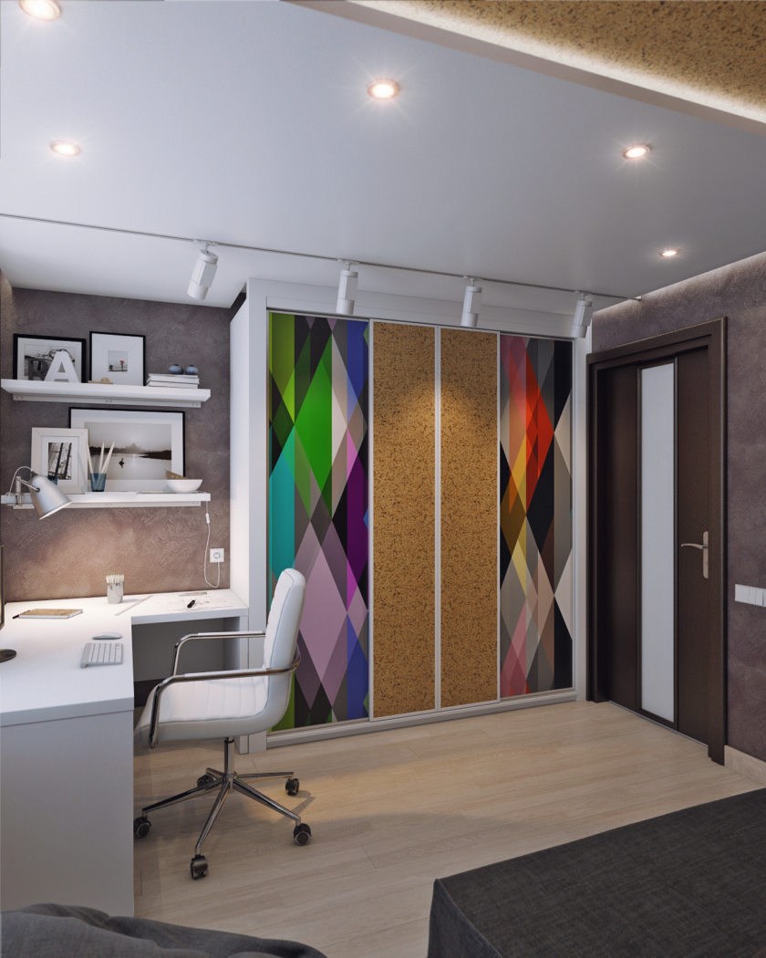 - Un style moderne. Ils se distinguent par la plus grande liberté de conception. Vous pouvez utiliser divers matériaux et nuances, souvent accompagnés d'un mur spécialement conçu pour les photographies ou les affiches.