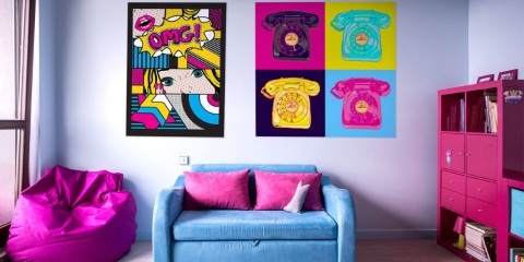 Des autocollants brillants décoraient la pièce et diluaient la prédominance du blanc