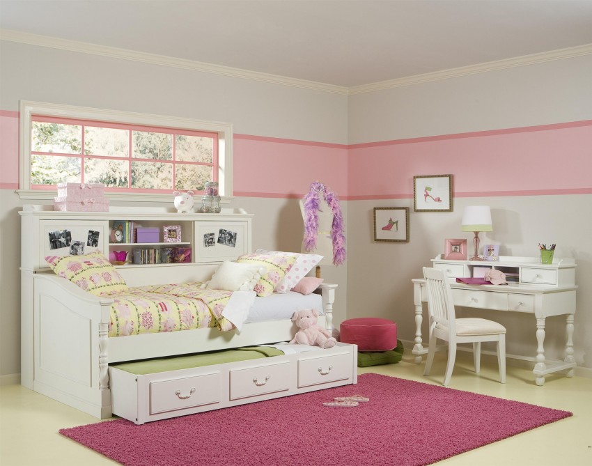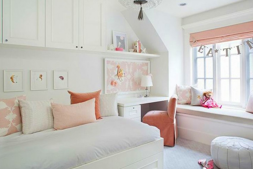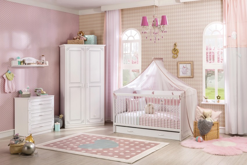 - Blanc avec rose. La couleur rose convient traditionnellement précisément à la pièce où vivra la petite fille. L'avantage de cette palette de couleurs est qu'au fil du temps, la pièce n'a pas à être remodelée globalement. La couleur, où dominent le blanc et le rose, ne perdra pas sa pertinence pour une adolescente et une fille adulte.