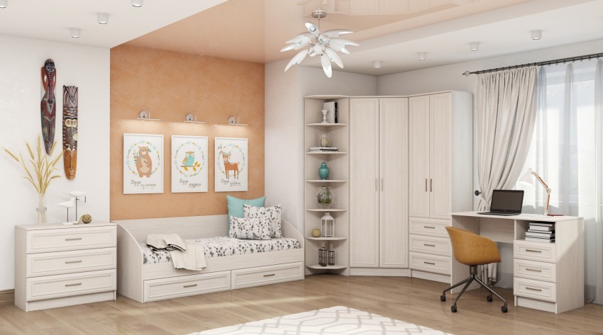 Cette nuance convient à une chambre d'un enfant de tout âge, mais avec une mise en garde - pour les jeunes enfants, il est habituel de combiner un ton blanc avec des nuances neutres. La polyvalence de la couleur est également confirmée par le fait qu'elle convient aussi bien aux filles qu'aux garçons.