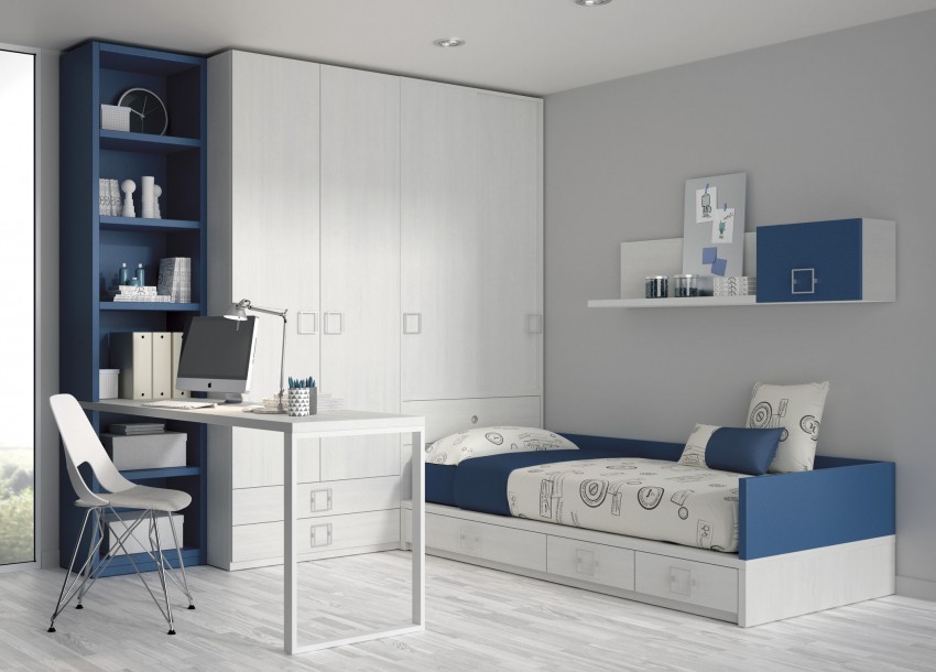 Une combinaison de blanc et de gris est idéale pour la chambre d'un adolescent, quel que soit le sexe de l'enfant